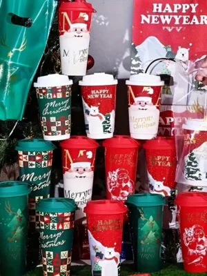 • Vasos Navideños con tapa son grandes (650 ml) casi 1 litro reutilizables-VARIOS PRECIOS